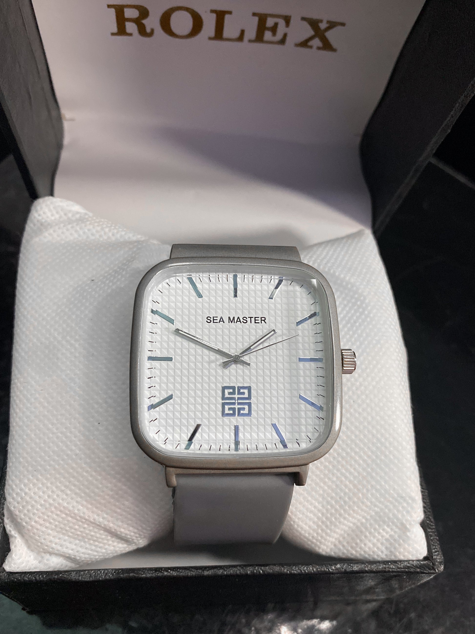 The Grey & White Watch (Sea Master) is a sleek and stylish timepiece designed for those with a love for the sea. With its stylish grey and white design, this watch is complemented by precision time-keeping and durability. Perfect for any occasion, this watch is a must-have for anyone looking for a versatile and reliable accessory.